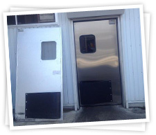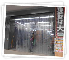 スーパーや百貨店等の売り場スペースとバックヤードを仕切るドアです。業務用ドア、従業員がカートを押して開けるような、観音開きのドアといえば思い当たるのではないでしょうか。バネは使わず、ドアの重さで自動で閉まるシンプルな構造で、寿命が長いという特徴があります。10年以上使ってもらっているケースもざらなんですよ。